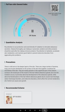 Công nghệ quang phổ UV sẽ chụp gương mặt bằng ánh sáng thường và ánh sáng tia cực tím. Qua ánh sáng UV, các vấn đề về như mụn, thâm, lỗ chân lông, mức độ nhạy cảm… sẽ hiển thị trên màn hình. Sau đó, kỹ thuật viên chỉ cần lựa chọn vùng khám, máy sẽ phân tích dựa trên 2 hình ảnh được chụp bằng ánh sáng thường và ánh sáng UV.