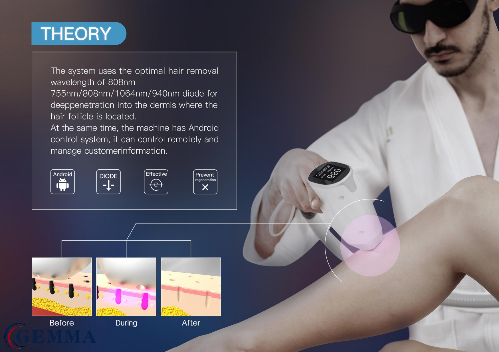 Triệt lông bằng công nghệ Diode Laser là một phương pháp loại bỏ lông vĩnh viễn bằng cách sử dụng tia laser diode. Bản chất của phương pháp này là sử dụng bước sóng ngắn tác động sâu lên da, triệt tiêu chân lông ở sâu bên trong. Khi thực hiện, bạn sẽ không cảm thấy nóng rát và khó chịu như các công nghệ ứng dụng laser cũ. Nguyên nhân vì trong quá trình triệt lông, hệ thống làm lạnh sẽ được trang bị để bảo vệ bóng nguồn Diode. Hệ thống Module này luôn phải được giữ ở nhiệt độ dưới 20 độ C để làm mát.